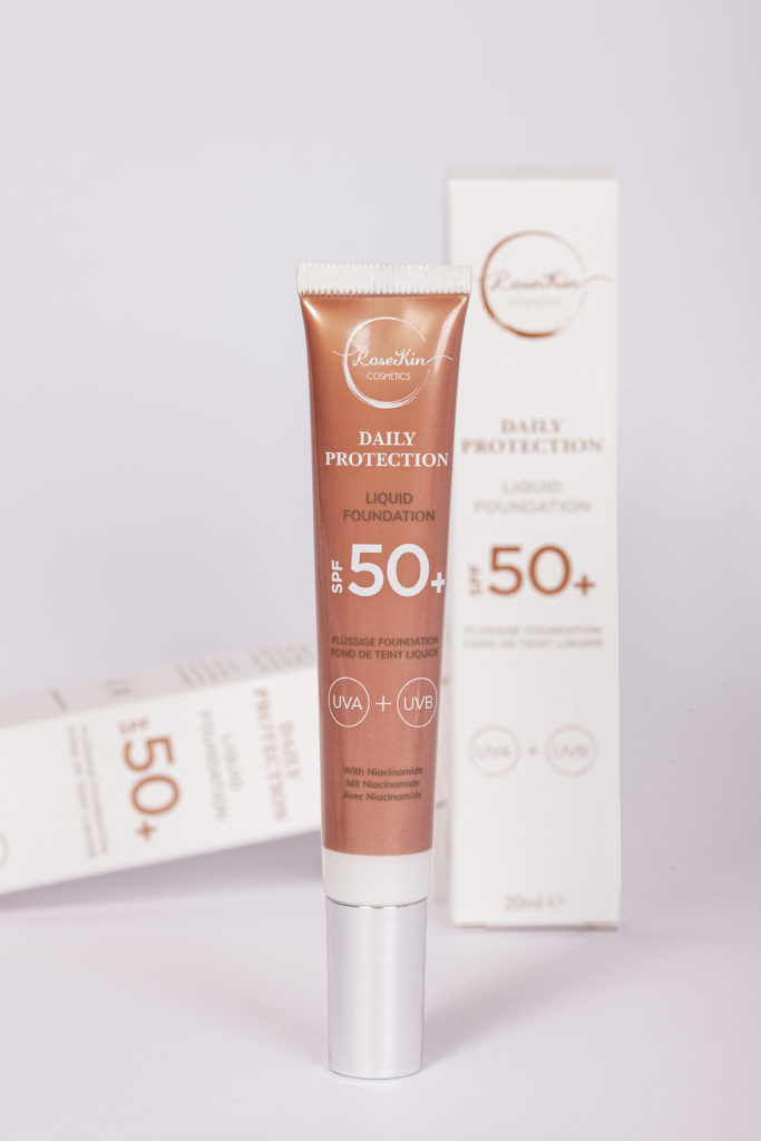 -Kombination mit Sonnenschutzmittel: Ein effektiverer Ansatz, um sowohl vor UV- als auch vor blauem Licht zu schützen, besteht darin, Foundation mit einem Sonnenschutzmittel zu kombinieren, wie z.b die Daily Protection Foundation, das speziell entwickelt wurde, um blauem Licht zu blockieren. Dadurch wird der Schutz verbessert.
