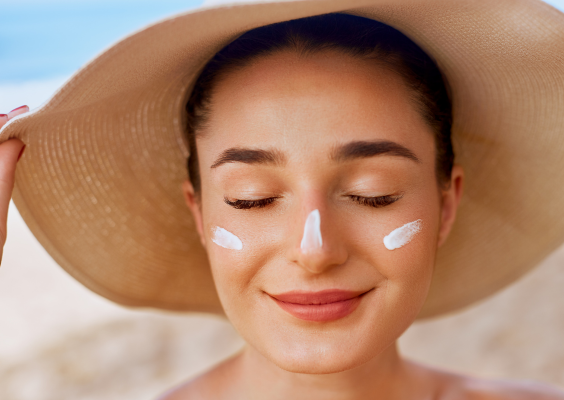 Sunscreen on face of woman